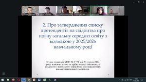 10 лютого 2026 року в ліцеї відбулося онлайн-засідання педагогічної ради. Педагоги підбили підсумки роботи та обговорили подальші кроки розвитку закладу. На зустрічі проаналізували викладання фізики у старших класах, відзначили високий рівень роботи вчителя та якісне виконання навчальних програм. Також затвердили перелік випускників, які можуть отримати свідоцтво про освіту з відзнакою. Окрему увагу приділили підвищенню кваліфікації педагогів, упровадженню НУШ, інклюзивної освіти та цифрових інструментів. Підсумки дистанційного навчання показали, що більшість уроків проводяться онлайн наживо, що допомагає зберігати постійний зв’язок з учнями.