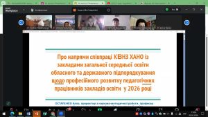Заступники директора з НР Кузьменко Н. Є., Мурованна Л. С. 20 лютого 2026 р. взяли участь в онлайн-семінарі за темою «Адаптивне управління розвитком закладу освіти в умовах змін: від стратегічного планування до реалізації інноваційних проєктів» , проведеному Центром менеджменту та інноваційного розвитку освіти КВНЗ «Харківська академія неперервної освіти»