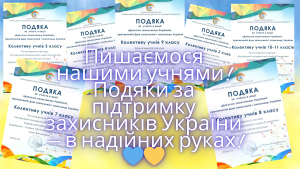 – Обласна акція “Дякуємо Захисника України” (22.10.2022) – учні 1-11 класи (Подяки – 12);